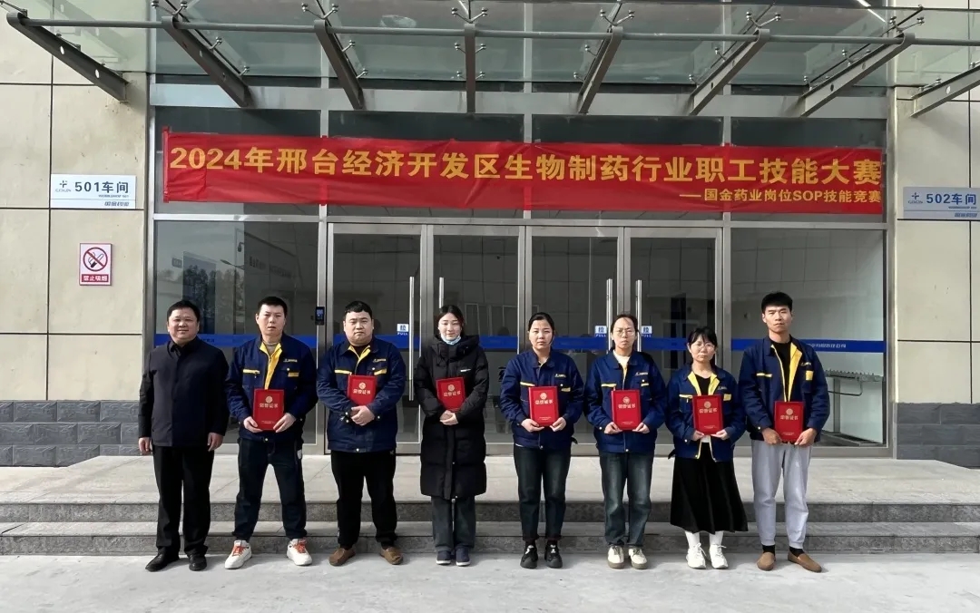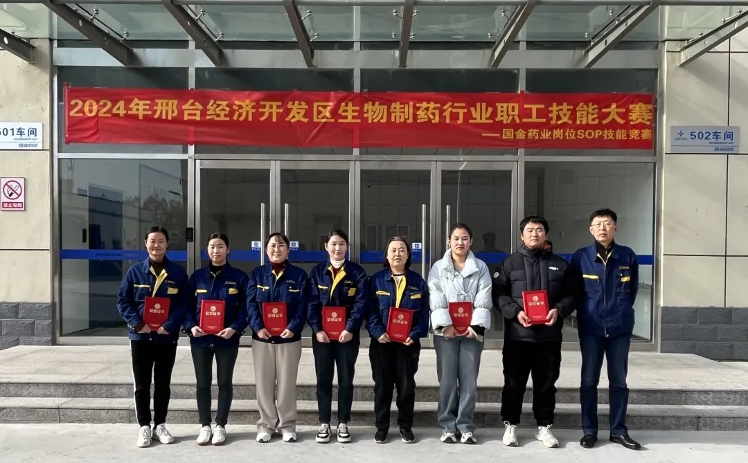 11月30日,國金藥業舉辦崗位SOP技能競賽頒獎儀式。國金藥業生產總監閆宏寬、質量總監趙國強、工會主席李炳佑出席頒獎。